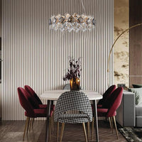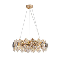 The ABBY chandelier is an elegant light fixture that will add a touch of sophistication to any room. The tiers of hand-made, stereo diamond-shaped crystal blocks cast a warm luminosity through your space and deliver charming elegance. The chandelier is composed of hand-made stereo diamond-shaped crystal blocks and has a cascading design that is sure to add a touch of dynamic fun to any room. The chandelier uses premium materials to keep a weather-worn look and let the sparkle shine through the tiered crystal blocks to produce a warm, opulent glow. The light bulb holder can be twisted which makes it more convenient for you to install the light bulbs.