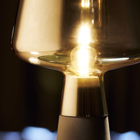 The ALFA lamp was inspired by modern architecture, specifically the combination of concrete and glass. The sleek, streamlined design is a delicate balance between sensitivity and strength, with a beautiful mouthblown glass shade and a solid, concrete base. Achieving the right balance between concrete and glass required the best experts at the Iittala Glass Factory. The handmade ALFA lamp reflects a soft, gentle light that warms any interior. Grey adds cool sophistication.